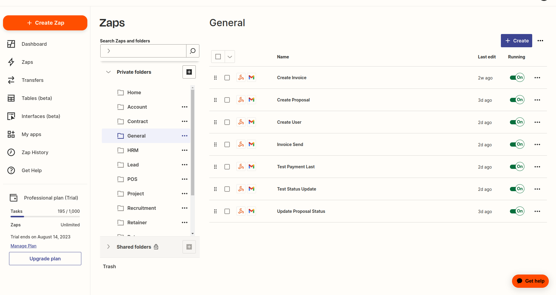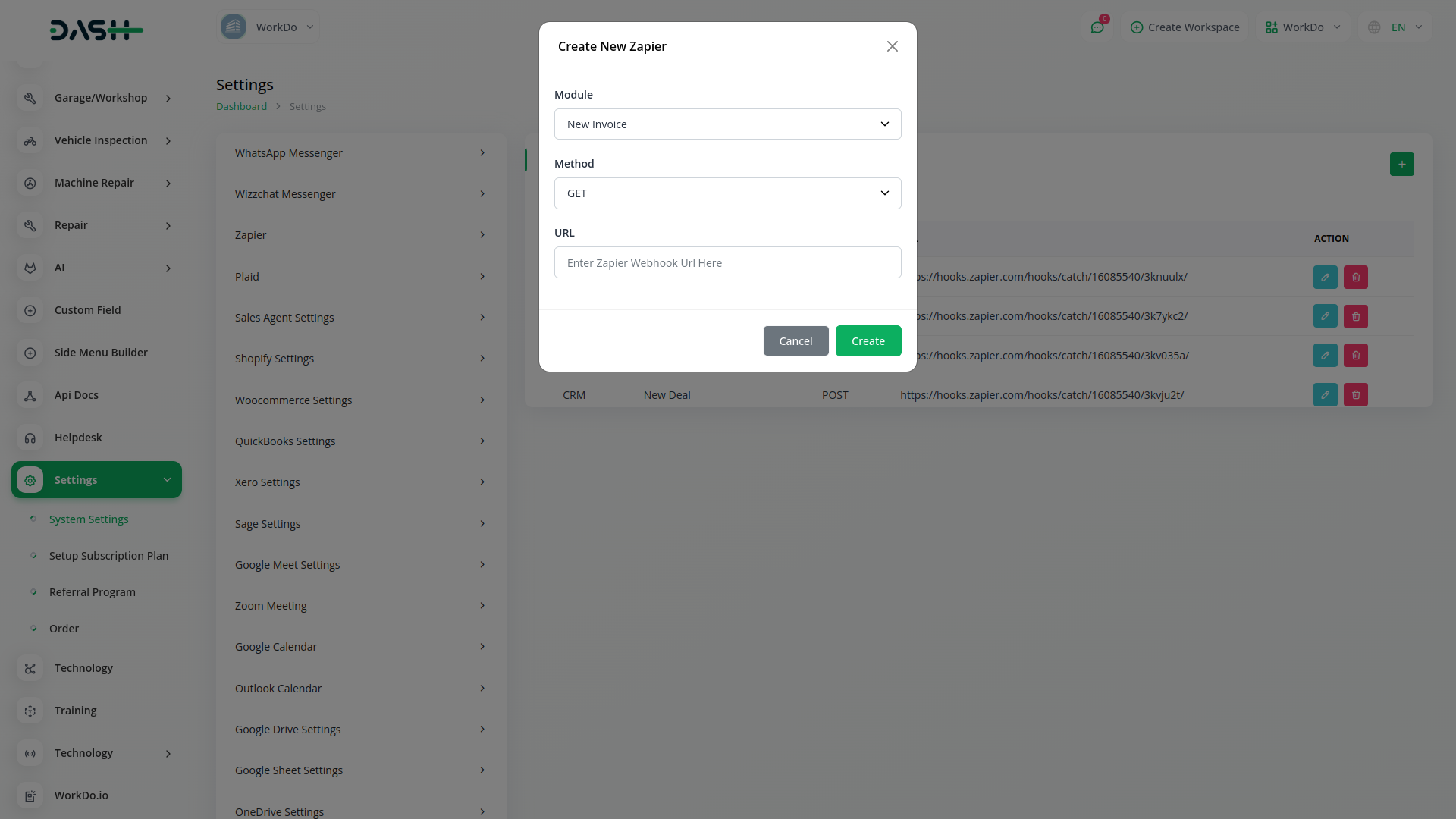 You can add a Zapier event in the settings page and you can also edit or delete functionality for Zapier. It is used for invoice, customer, retainer, proposal , user , customer and so on.